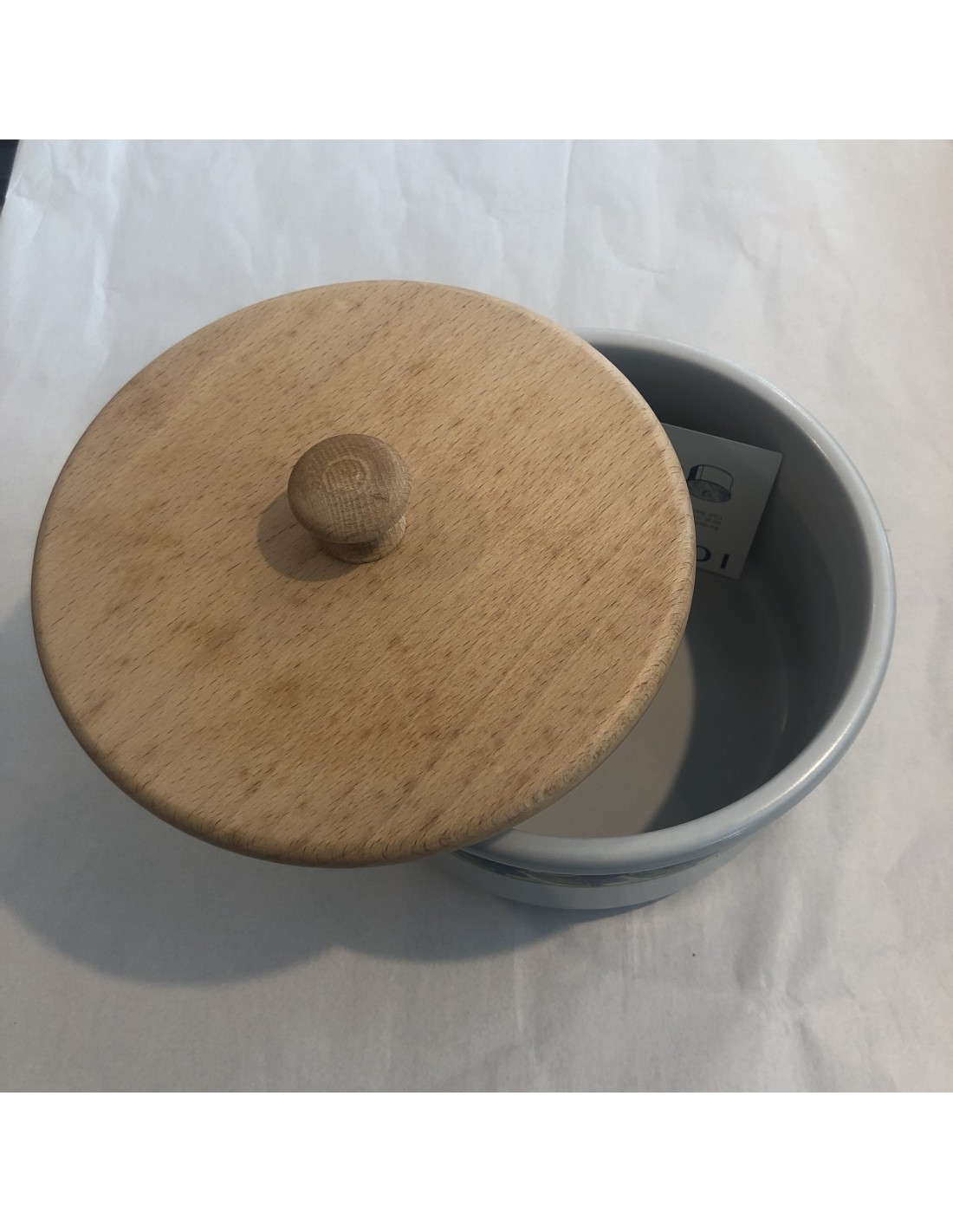 La biscottiera con decoro Scilla di Mancioli è in porcellana da fuoco.