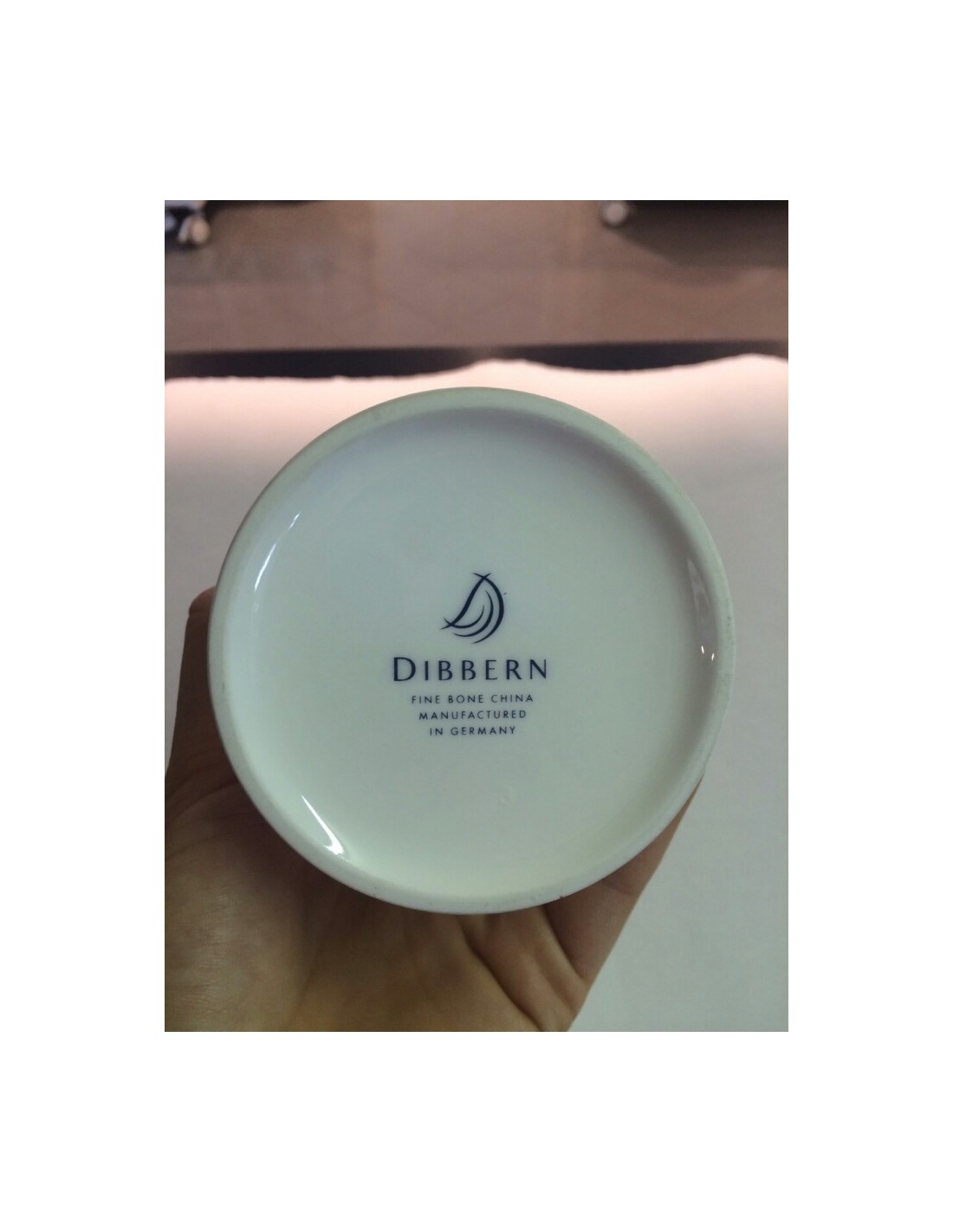 E' in fine porcellana e lavabile in lavastoviglie.