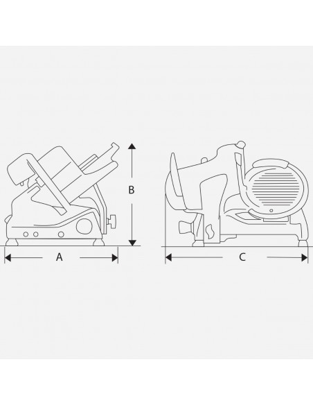 • Vela inclinata di 38° per favorire il pressaggio del prodotto e la caduta della fetta