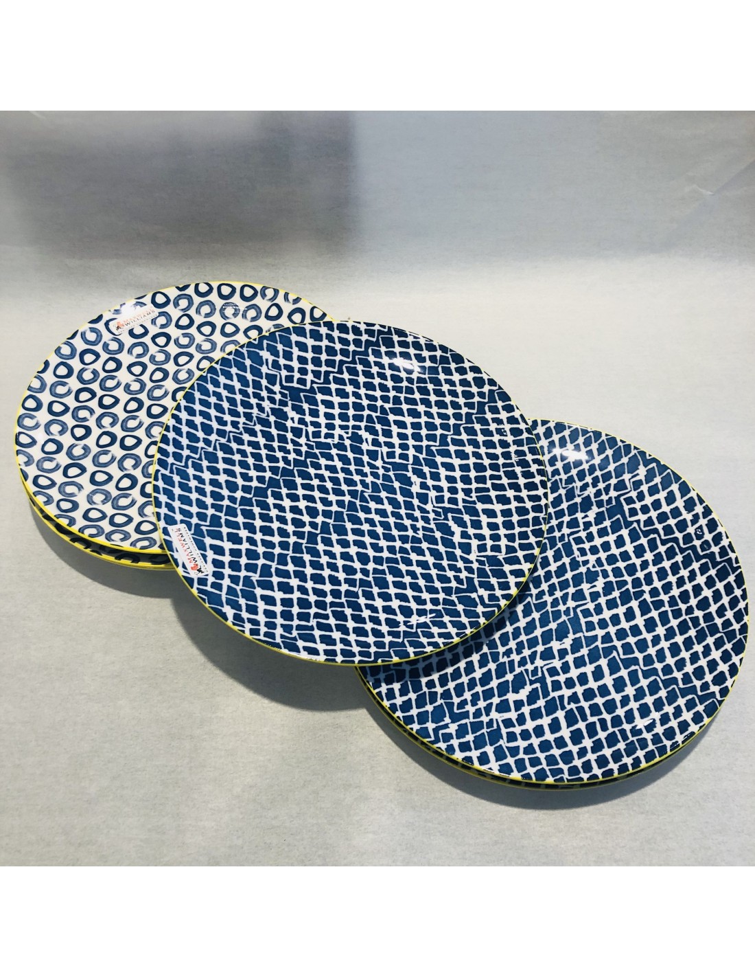 Colore: bianco, azzurro, blu e giallo; decoro a tema mare, 3 a tema scuro e 3 a tema chiaro (come da foto)