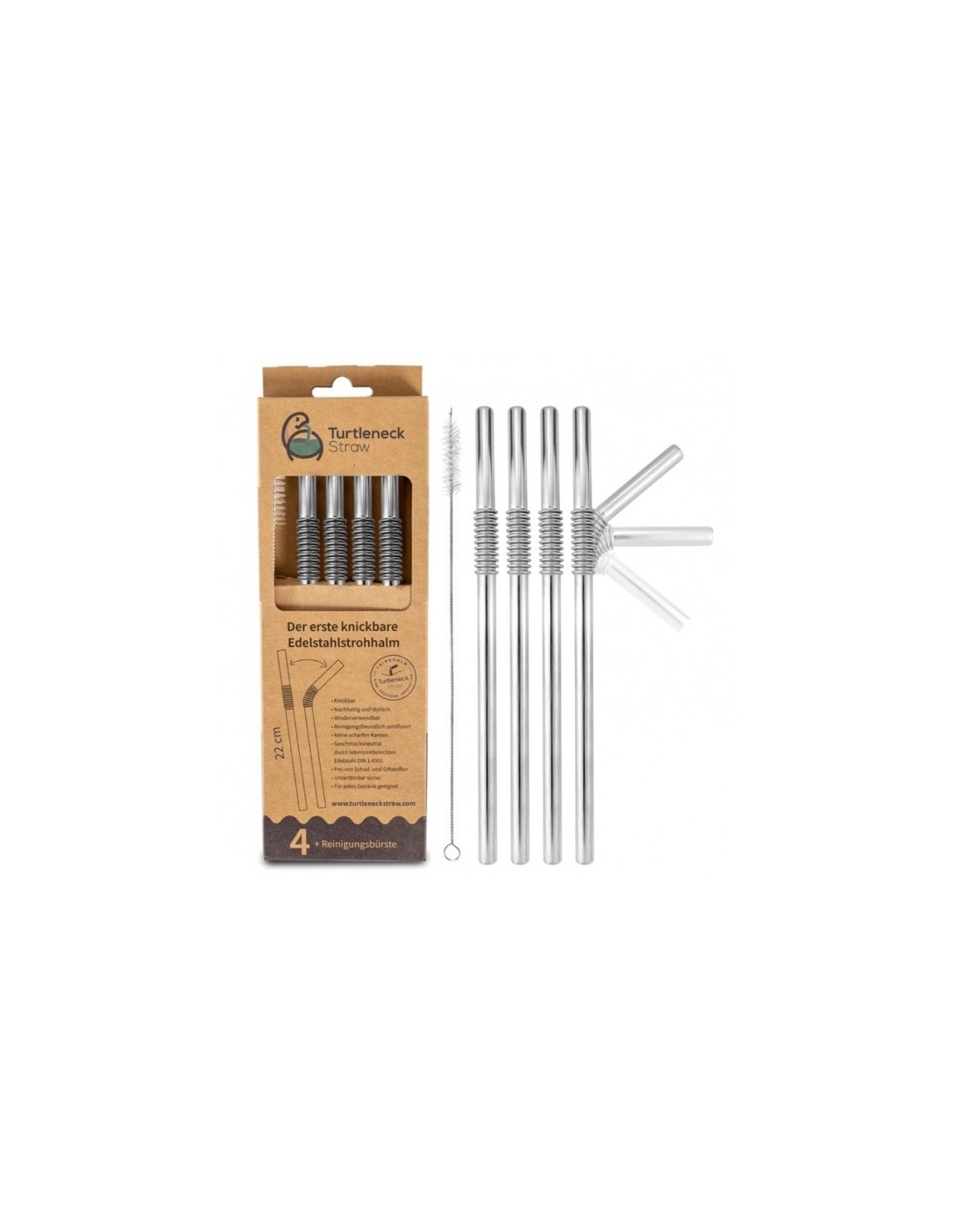 4 cannucce pieghevoli in acciaio con scovolino Turtleneck