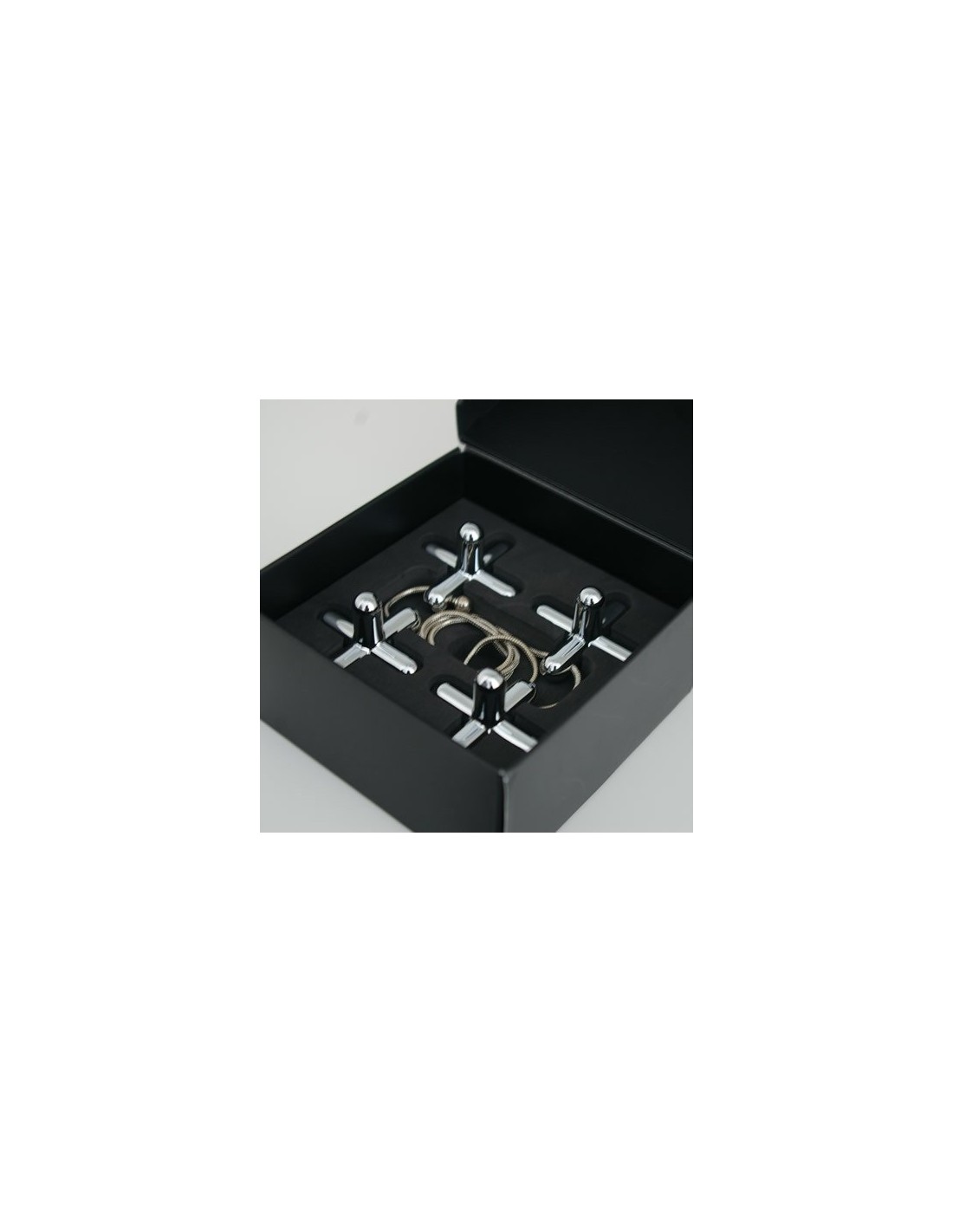 Il sottopentola ad elementi mobili Tripod di ALESSI è pensato per essere appeso a un gancio da cucina e poi preso e lanciato, come fossero dei dadi, sulla tavola. Una volta adattata la sua disposizione in tavola diventa una base su cui appoggiare una pentola, una teglia, un piatto da portata. Rilevante il contrasto tra la componente funzionale dell’umile tipologia presa in considerazione, il sottopentola, e l’opportunità di riscatto che le viene offerta dalla componente innovativa e ludica del progetto.
